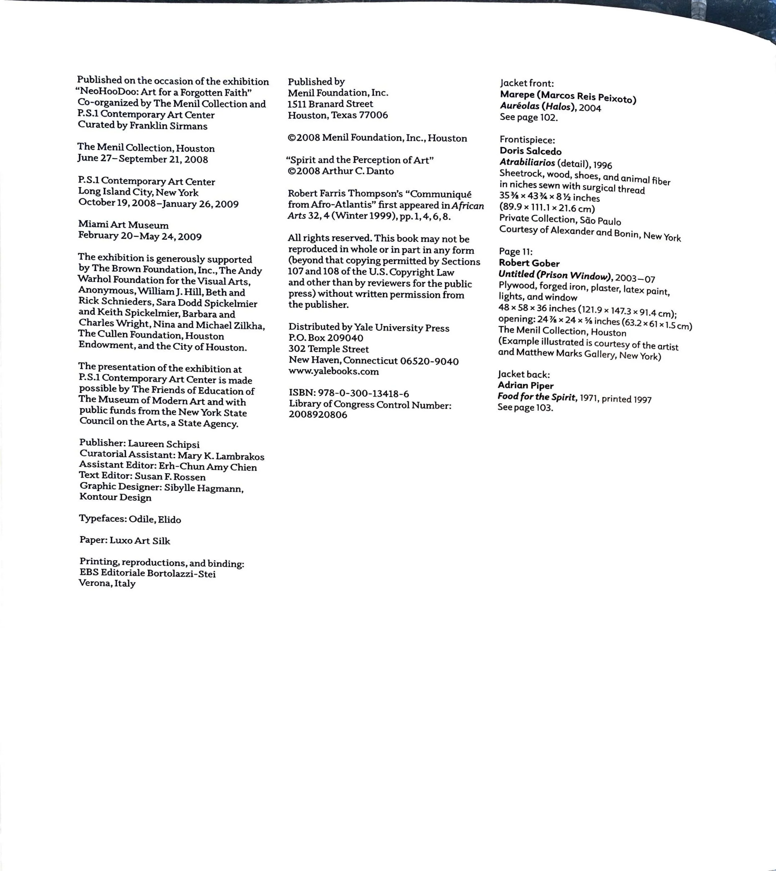 The Herzberg Essay “Ritual in Performance” is here reprinted as it appears in NeoHoodDoo: Art for a Forgotten Faith ©2008 Menil Foundation, Inc ISBN: 978-0-300-13418-6