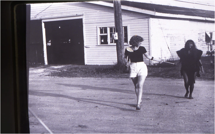 In “Ape Piece, performed at the All Iowa Fair in Cedar Rapids in June 1975, Mendieta developed her version of a gorilla parody common in circus sideshows in which a person dressed as a gorilla moves through the aisles under the big top. Mendieta, along with Ann Zerkel audited Breder’s summer-school course in which the students were assigned to do work at the fair.