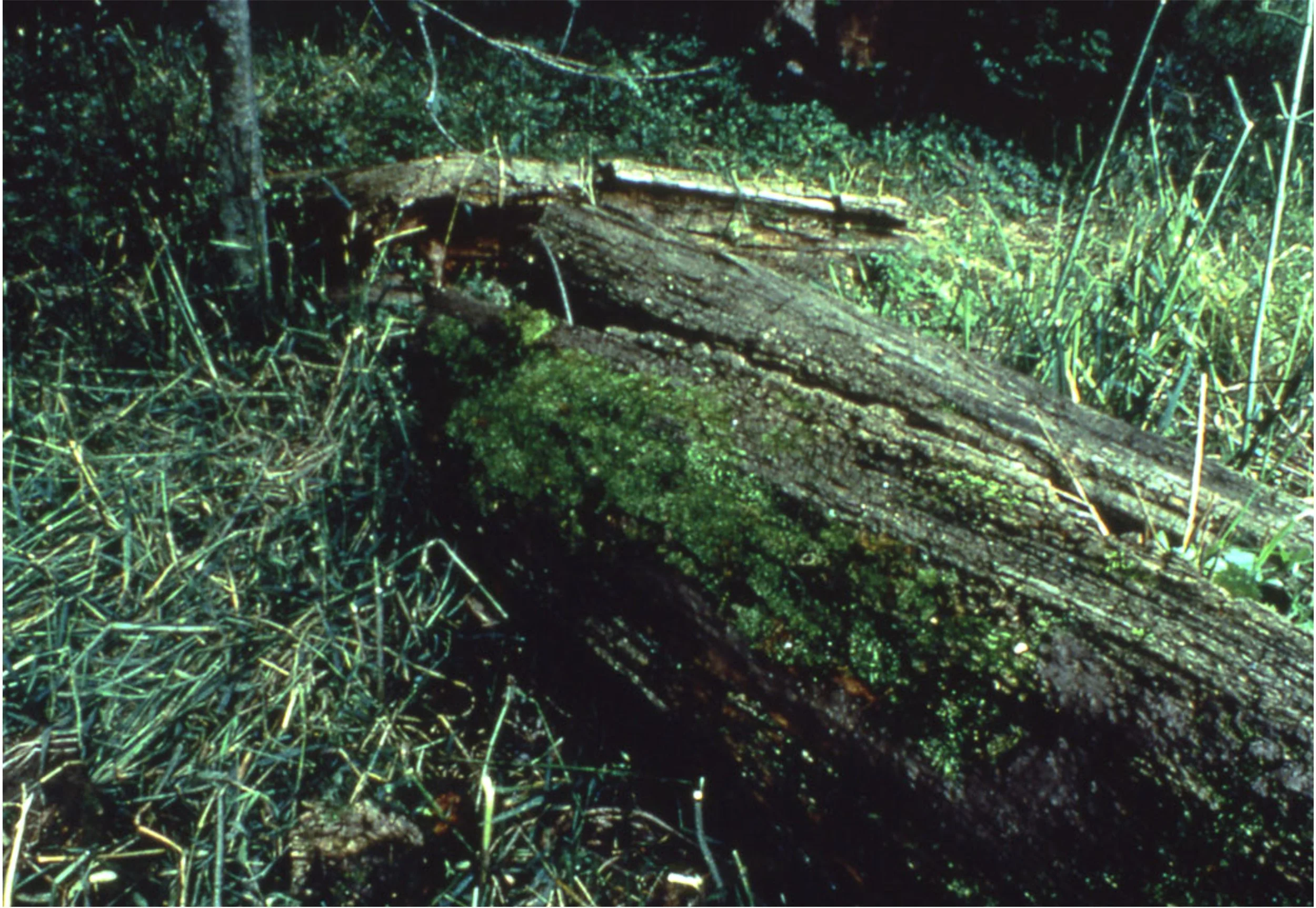 Mendieta, Sin título (silueta sobre un arbol caído con musgo), Iowa, 1978