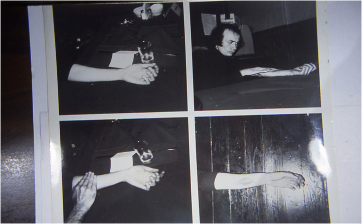 Franklyn Miller, a professor of film and video at the university and a collaborator in the CNPA performances, commented that Sharp was an “important vector” in disseminating knowledge of some of the recent artistic modes. He also provided the language and critical framework with which the students—and faculty as well—could articulate their visual explorations. The work Sharp showed, in conjunction with the discussions that took place in the Intermedia studio, inspired Mendieta with new expressive possibilities for using her body as a performative medium. After Sharp’s visit, Breder focused on the body as an agent in art. In Rubbing Piece of 1970, Acconci rubbed his left forearm for an hour until he had a sore. The notion of inflicting pain or causing discomfort by pushing the limits of the body was an objective of many early performance works. Mendieta did not subscribe to that aspect of practice.