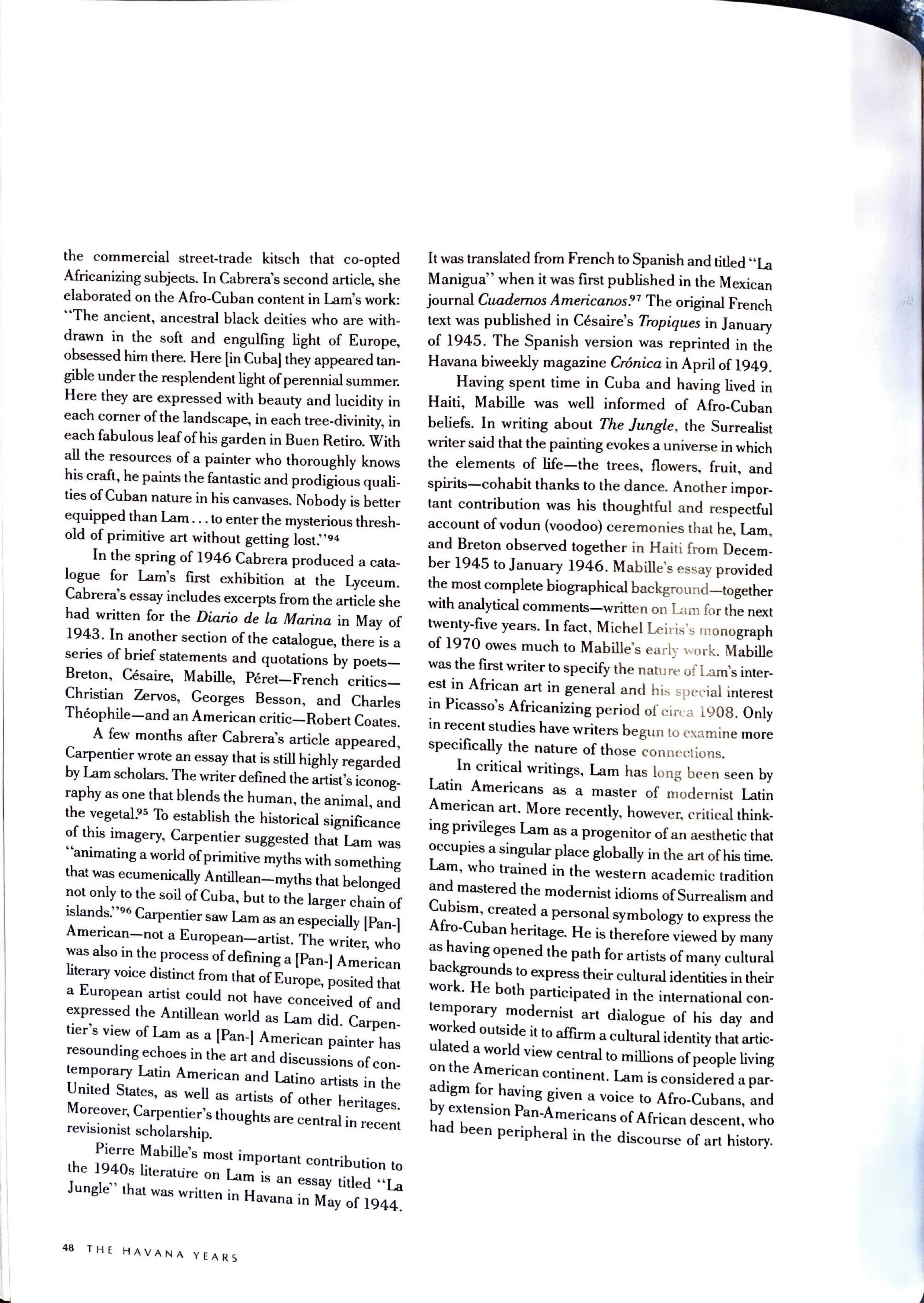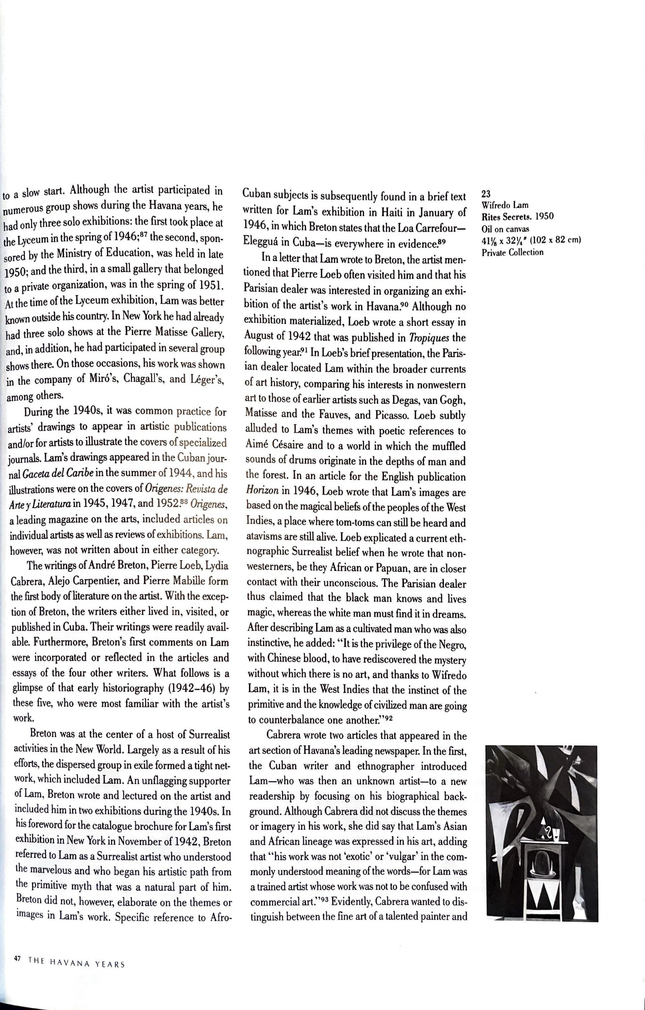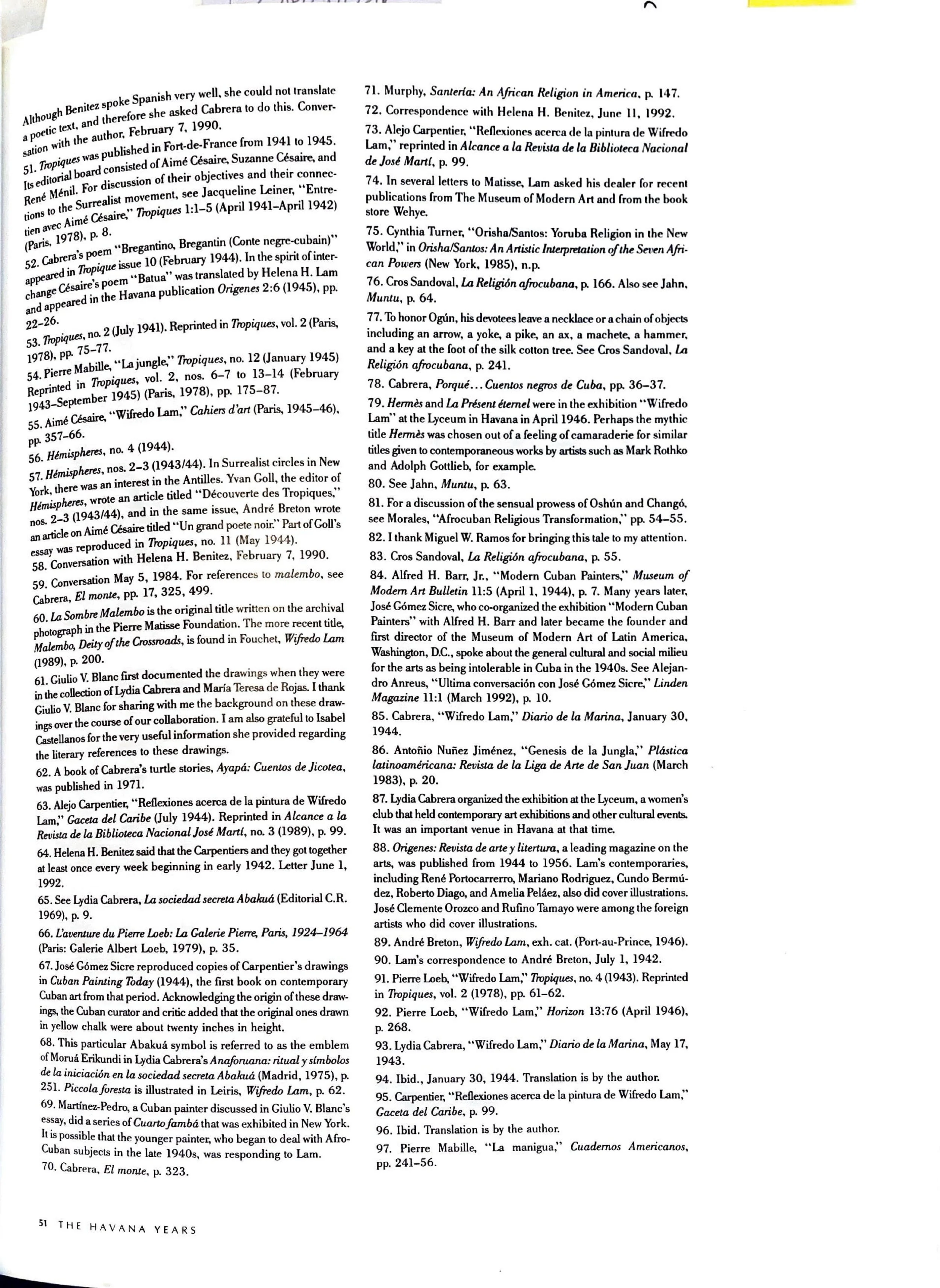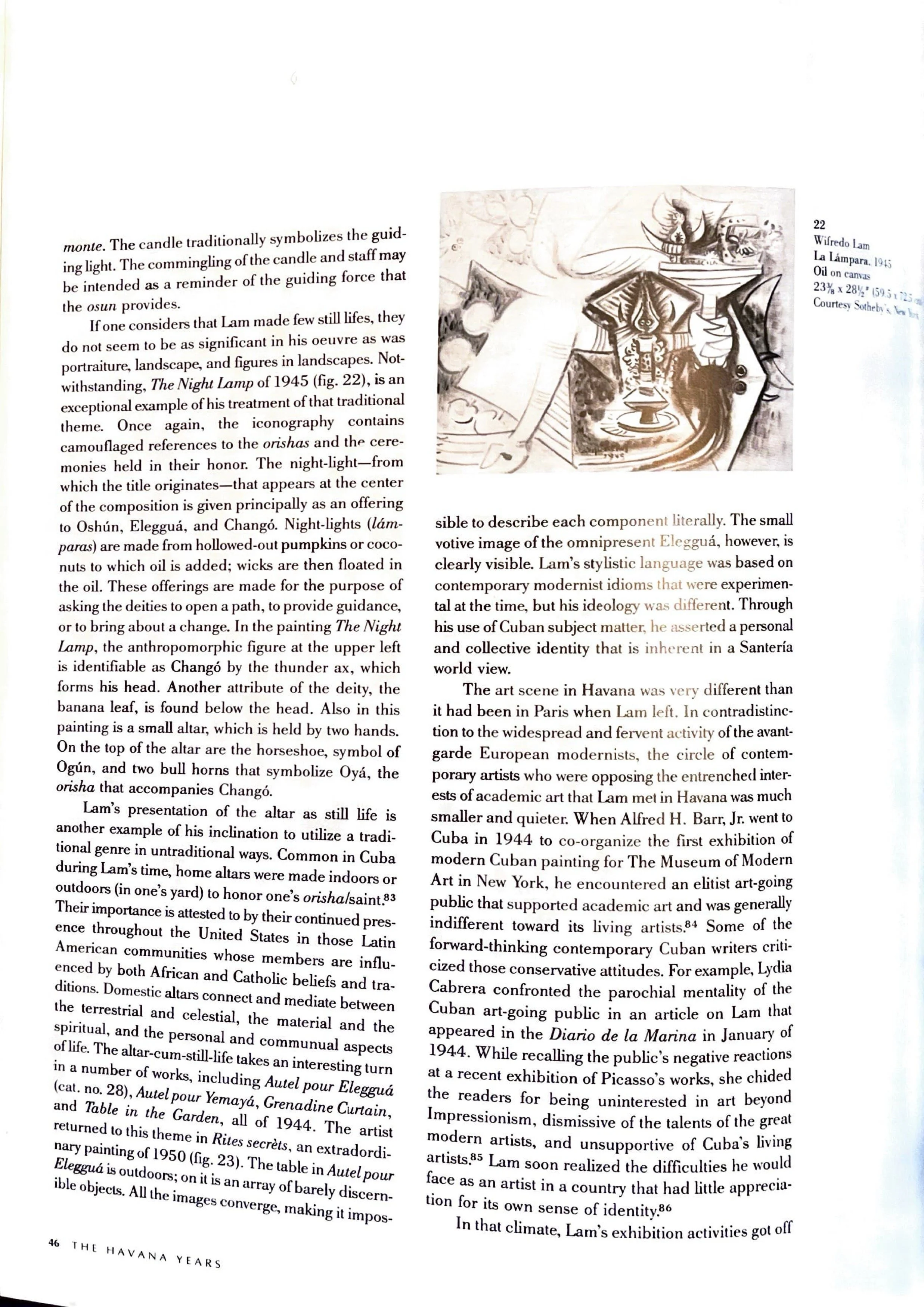 The Herzberg essay, “Wifredo Lam: Development of a Style and Worldview, The Havana Years 1941-1952” is here reprinted as it appeared in "Wifredo Lam: Development of a Style and Worldview, The Havana Years 1941-1952." Wifredo Lam and His Contemporaries. New York: The Studio Museum in Harlem, 1992 (pp. 30-51; co-essayists Lowery Stokes Sims, Giulio V. Blanc) ISBN 0-942949-08-0